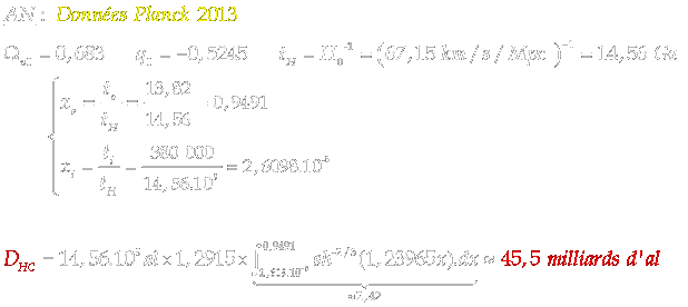et la distance propre allant de la Terre à la surface de dernière diffusion. Malheureusement chacune de ces valeurs dépend à la fois de Ho , Wv , Wk