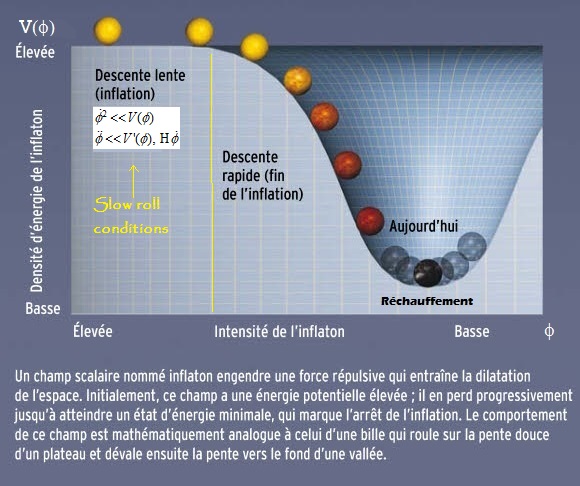 toute la densité d’énergie de l’Univers est contenue dans le champ scalaire nommé "l’inflaton". Ce champ doit,
