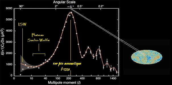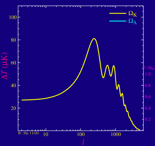 plus grande c'est à dire une valeur beaucoup plus faible pour le multipôle correspondant au premier pic acoustique et inversement si l'univert est spatialement ouvert.