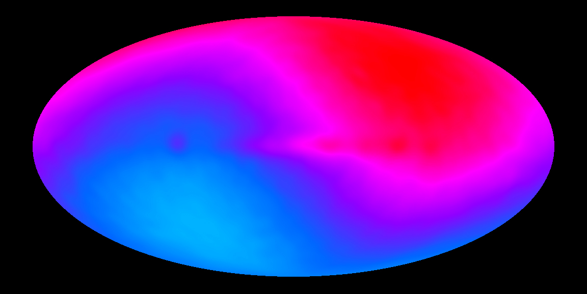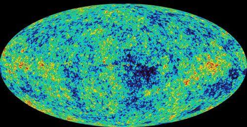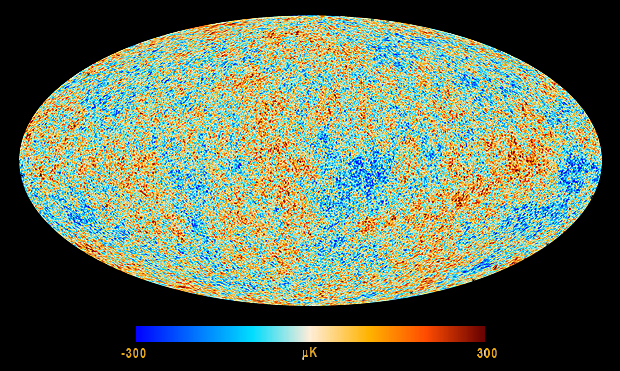 Carte de la sphère céleste montrant les fluctuations (ou anisotropie) du fond diffus cosmologique observées par le satellite WMAP puis Planck (seconde image) |