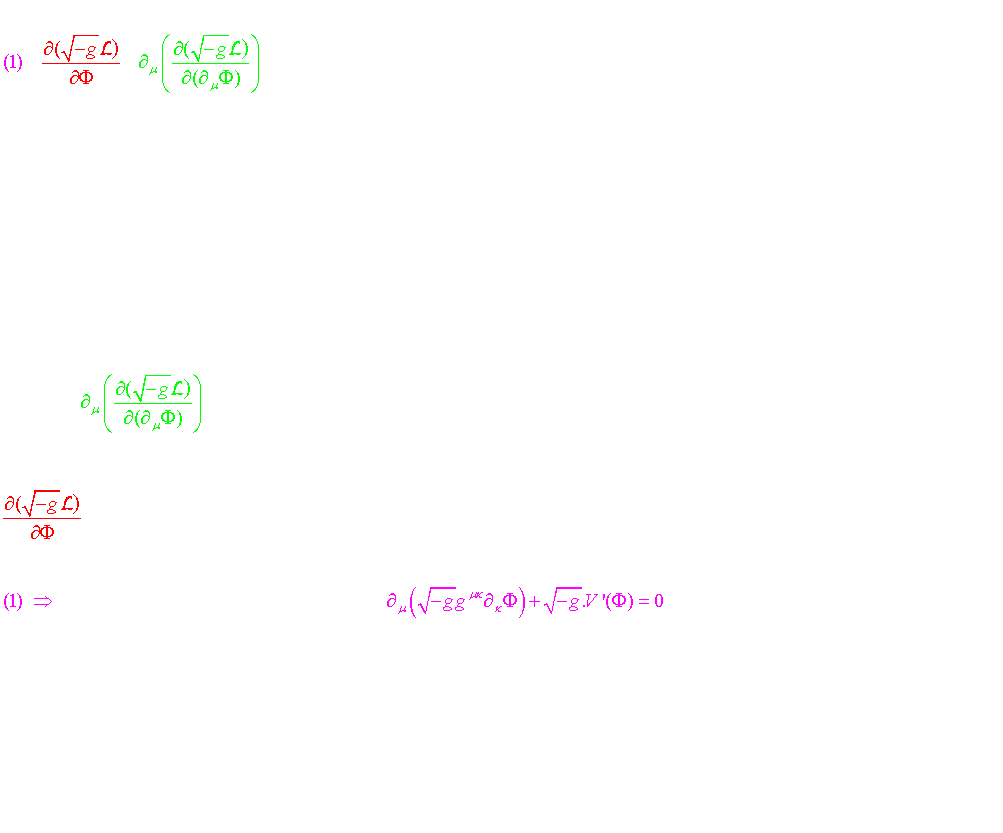 de l’interaction forte et électrofaible ou bien encore lors de la séparation de l'interaction faible et électromagnétique. Ce type de champs aussi appelés champs de "quintessence", sont considérés comme de simples champs de matières non couplés directement avec la gravité (seulement par le lagrangien du champ scalaire via le terme