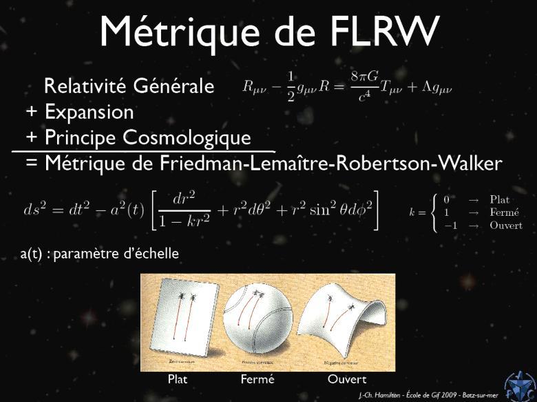 3-3) La métrique spatio-temporelle de Fridmann-Lemaître-Walker