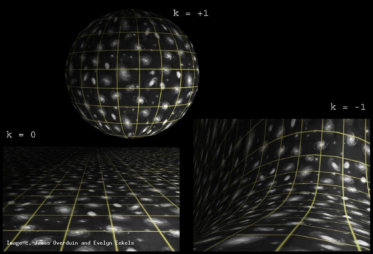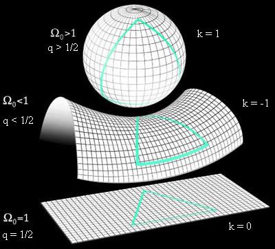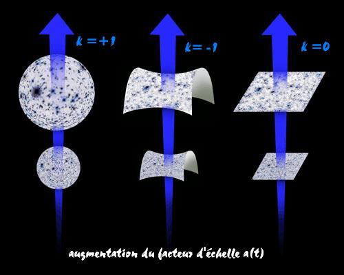 Le fait que notre univers soit homogène et isotrope restreint de façon drastique les formes géométriques que la partie spatiale de notre univers peut adopter. Les seules formes possibles pour l'espace qui sont compatibles avec la condition de symétrie entre tous les points et toutes les directions sont les espaces 3D à courbure constante, c'est à dire les espaces possédant une symétrie maximale. On peut montrer que seule la 3-sphère, la 3-hyperboloide et l'espace euclidien à 3 dimensions respectent les conditions de symétrie imposées par l'homogénéité et l'isotropie de l'univers.