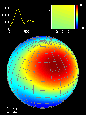 Le signal étant réparti sur une surface sphérique, les fluctuations de température sont décomposées en harmoniques sphériques: