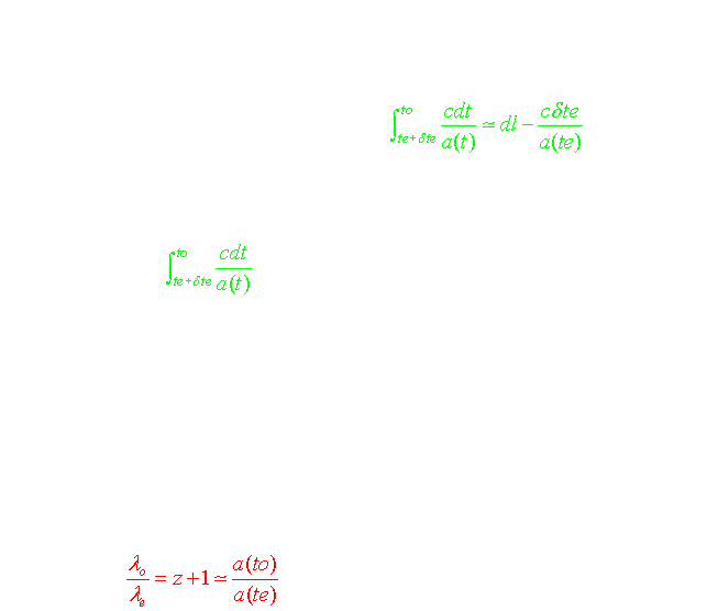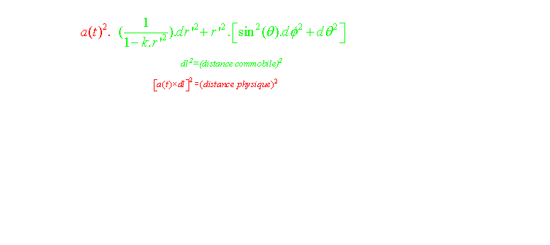 r(t) = a(t).r' représente la distance géométrique c'est à dire la véritable distance séparant 2 points au cours du temps (dans le cas d'un espace plat).
