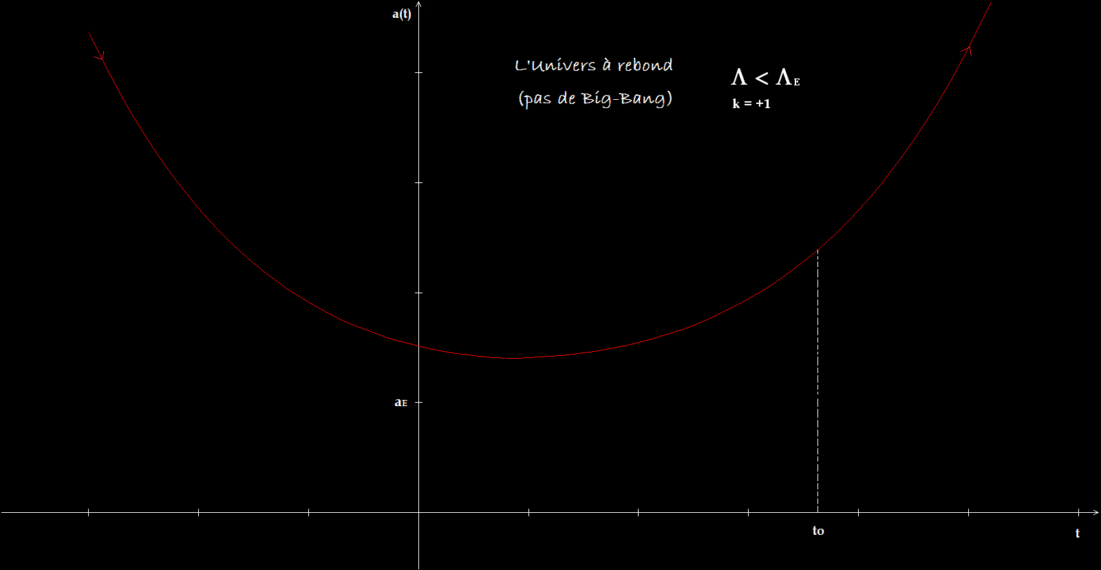 Près du big-bang, la densité d'énergie devient très élevée et approche la densité de Planck; Le terme de droite s'annule tout comme la dérivée de a(t). Il n'y a dès lors plus de contraction, ni d'expansion et la densité d'énergie ne peut plus croître au delà de la densité de Planck. Tout se passe comme si il existait une force répulsive empêchant l'univers de devenir trop petit pour finir sur une singularité.