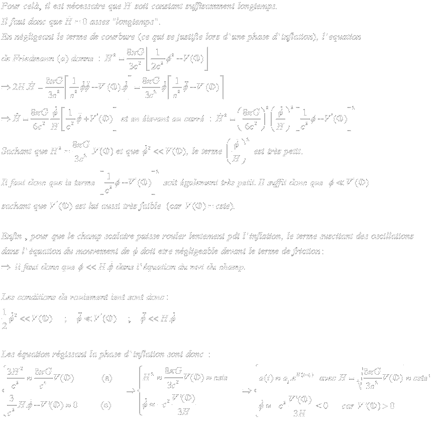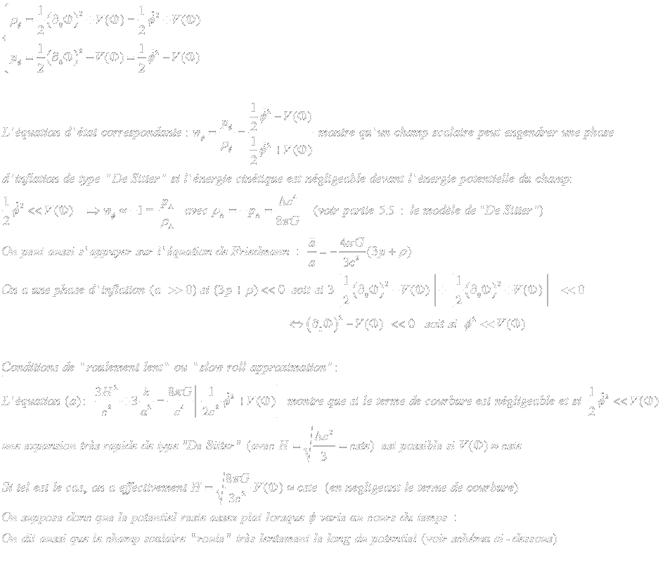 Un champ scalaire permettant une phase d'inflation doit donc obéir dans un premier temps à la condition :