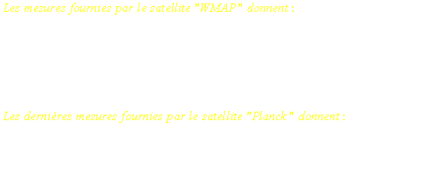 elle déduite à partir d'autres expériences comme celle utilisant les SNIA. Il reste donc 2 paramètres cosmologiques ayant un rôle sur la valeur de