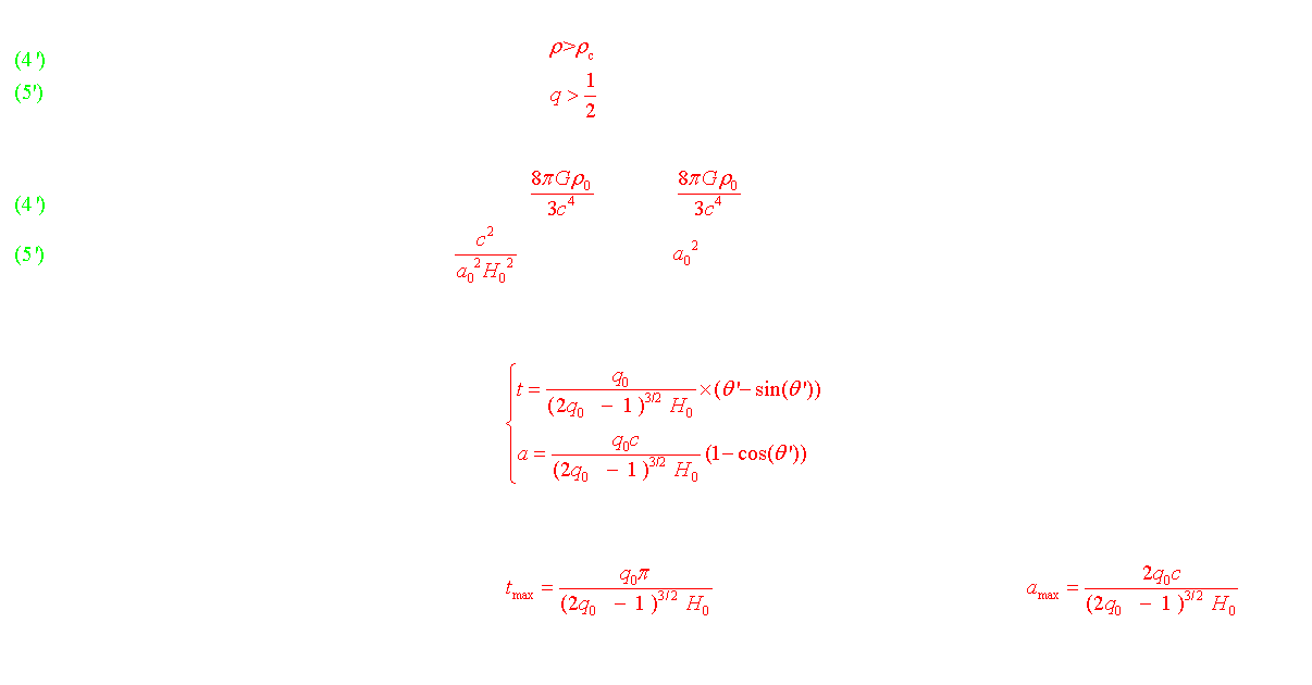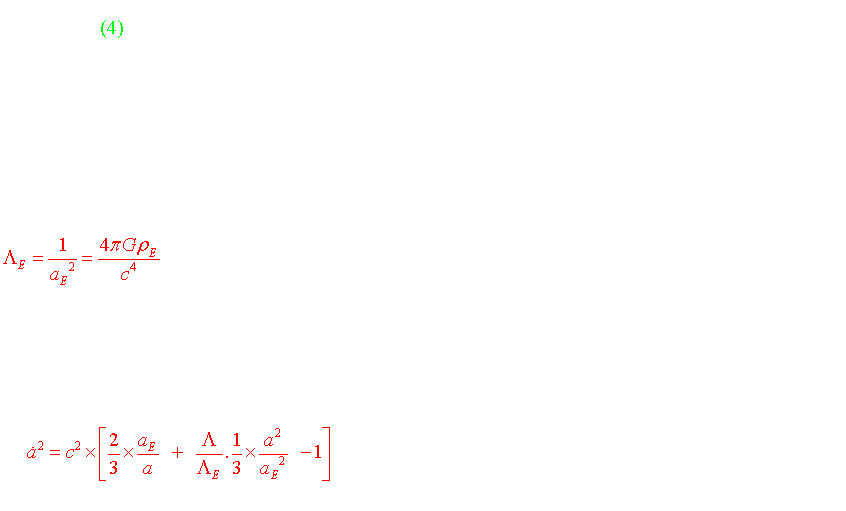 En effet, selon cette théorie, les équations de Friedmann sont légèrement modifiées et notamment l'équation (4) qui s'écrit désormais: